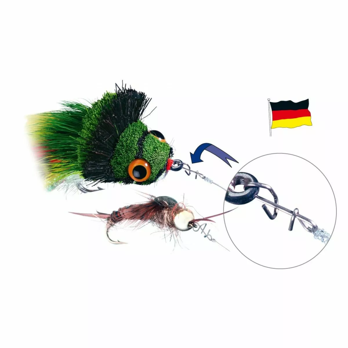 Micro Snaps can be used as a substantial relief for the fly change. This allows the fly assembly and a desired fly change to be carried out very quickly. The fly is attached to the Micro Snap movable, which can contribute to increase the Fangerfolges. In addition, it should be noted that the leader is not shortened in a fly change. The Micro Snaps can be mounted directly from the supply ring to the line.