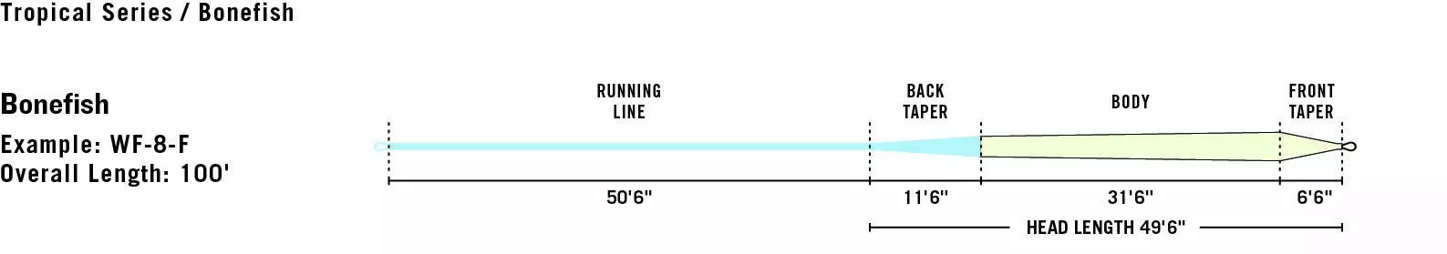 RIO’s Bonefish line has a long head and rear taper to smooth out the loop, and to make long efficient casts, while the mid length front taper produces great turnover and easy presentation of typical bonefish flies. This is a great line for the more experienced flats angler, and ideal for fast 2nd shot casts to cruising fish.