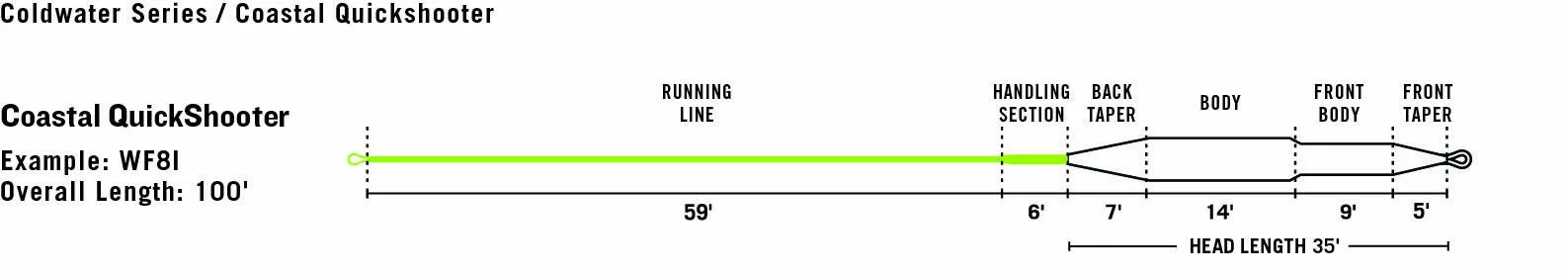 RIO’s Coastal QuickShooter line features a clear intermediate head, and is designed specifically for anglers fly fishing off the coast in cooler conditions. The line features a short front taper that has no problem turning over baitfish and shrimp patterns in typical coastal winds, and has a short, easy casting head to help the rod load at close range