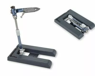 Travel vise for tying flies and streamers. Thanks to its special design and to a series of articulated joints it can be folded and placed in a special box of cm 15X10X2 without disassembling any piece. The accurate machining and the choice of materials provide exceptional performance to this small vise. The Airone uses the same efficient interchangeable jaw of Elite vise. The head has adjustable angle, 360° rotary action and adjustable height. The rotary tension is adjustable, with locking position at any angle. Suitable for left-handers. Supplied with allen key and instruction manual.