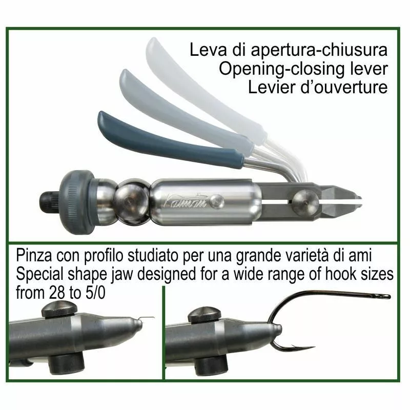 Een super kwaliteits vise waarmee je supersnel mee van haak kan wisselen. Door de hendel in te knijpen, de haak tussen de vise bekken te houden en de hendel rustig te ontspannen zal de haak onwrikbaar in de klem vast zitten De geharde stalen bekken welke levenslang worden gegarandeerd zullen zoutwater haken van 8/0 tot de kleine maat 28 forelhaakjes super klemmen zonder de vise aan te passen.
