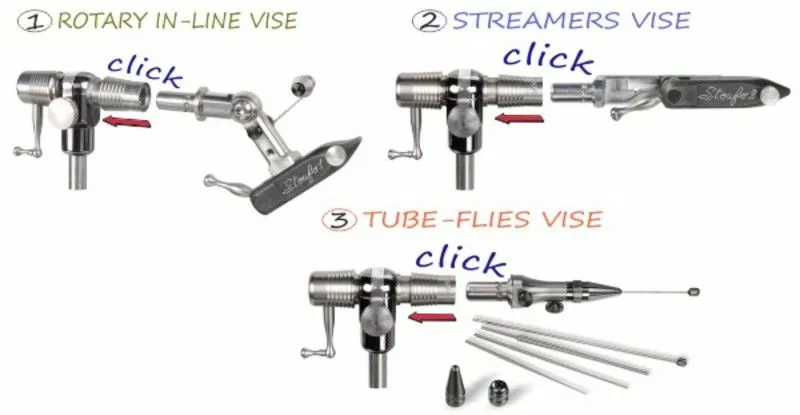 De drie vise koppen kunnen door middel van een click worden vervangen. De roestvrijstalen as is in-line volledig roterend met dubbele precisie-kogellagers. Alle onderdelen van de drie visekoppen worden meegeleverd met de Transformer. De nieuwe stabiele tefelplaat heeft een handig geïntegreerd gereedschapak. Andere belangrijke eigenschappen van de Transformer: verwisselbare klemmen, instelbare rotatiespanning, soepele rotatiebeweging, vergrendelde positie onder elke hoek, snelle vergrendeling van de as om de 45 ° hoek, instelbare hoogte, omkeerbaar voor linkshandige. Andere accessoires waren onder meer: ​ parachutetang, verstelbare materiaalclip, inbussleutels en instructiehandleiding.